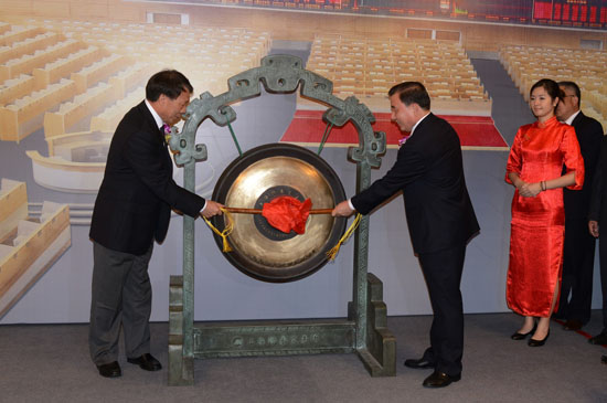 集團董事長劉志江(右)與天津市政府副秘書長袁樹謙共同為中材節(jié)能上市敲鑼