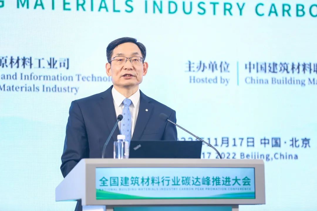 11月17日,全國建筑材料行業碳達峰推進大會在京舉行,大會主題是“綠色低碳安全高質量”。工業和信息化部原材料工業司司長陳克龍,中國建筑材料聯合會黨委書記、會長閻曉峰,中國建材集團黨委書記、董事長,中國建材股份黨委書記、董事長周育先出席會議并致辭。工業和信息化部原材料工業司副司長邢濤,中國工程院院士、中國建材集團總工程師彭壽,中國建筑材料聯合會常務副會長陳國慶,副會長張東壯、劉建華,安徽海螺集團、華新水泥、北京金隅集團相關領導與代表參會。會議由陳國慶主持。